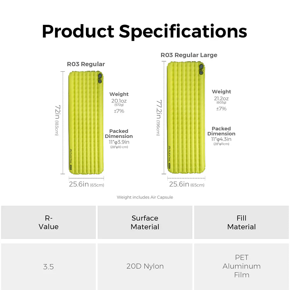 Flextail Gear Tiny Sleeping Pad R03 AVS - 3.5 L-Value 3 Season Sleeping Pad with Pump (Large)