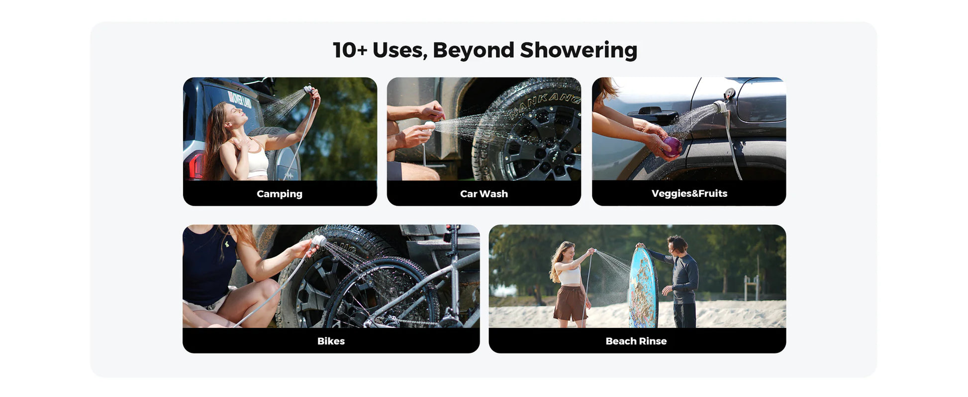 Experience the perfect blend of power and portability with the Flextail Tiny Shower. This ultra-light device weighs just 356g yet delivers a strong flow rate of 1.19-1.32 gal/min and water pressure of 0.52 N, offering a refreshing shower experience similar to home. Its upgraded showerhead features fine 0.012-inch holes and a large 113cm² spray area for a gentle, wide-reaching spray. Compact and hangable anywhere with a built-in hook, it’s ideal for camping, beach rinses, pet care, and more. With Type-C charging and IPX7 waterproofing, it’s built for adventure and multiple uses.