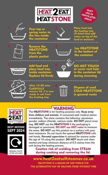 The 80g HeatStones are compatible with the full range of Heat2Eat small Self-Steamers