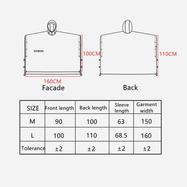 • Upgrade waterproof ≥ 10000mmH20, Technology moisture permeability ≥ 10000g / M² / 24HR(The above data is obtained by the GB/T 4744-2013 and T 12704.2-2009 testing methods. The product can be used as a raincoat in windy and rainy weather and has the moisture permeability and deodorization that raincoats do not!)