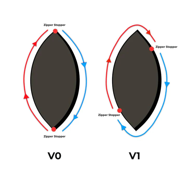 The new version(V1) hammock further improves the zipper usage experience by relocating the zipper stoppers from the ends of the hammock to a more accessible position, enabling you to open and close the zipper in a more relaxed and comfortable angle and posture.