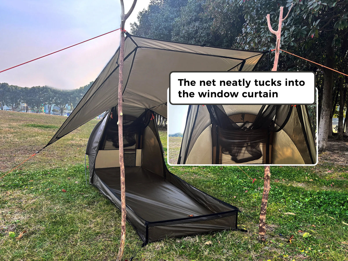 Thoughtful Features for Outdoor Enthusiasts: Equipped with two doors, rain-proof vent windows, and color-coded zipper heads, this tent provides convenience and practicality. Its dual-sided zippered access and multiple ventilation options enhance comfort and usability for solo campers.