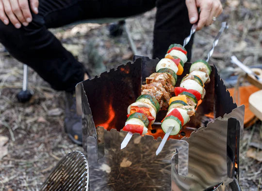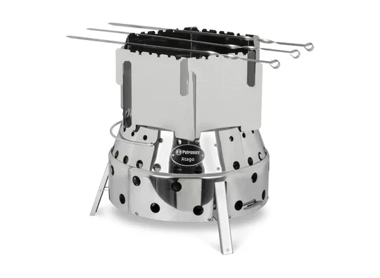 If you use all six segments, the reflector shield allows you to fix the Atago grill grate comfortably and securely. This way you can prepare your barbecue at an optimal height and protected from the wind. There are also notches in the Reflector Shield allowing barbecue skewers to lie stably over the fire. Best of all, with the generous 50 cm long metal grill skewers, you can let the grilled food brown perfectly and evenly without constant holding.