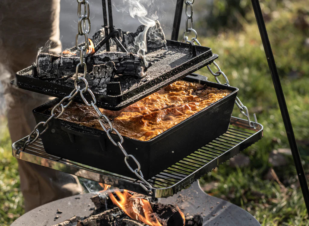 The k12 Loaf Pan is the versatile pan for professionals around the campfire and beginners in the outdoor cooking. Whether on the stove, on the grill, in the oven or over an open fire, the extra-large Loaf Pan is suitably used anywhere thanks to the excellent properties of cast iron, turning the culinary adventure into an original experience with characteristic flavour.