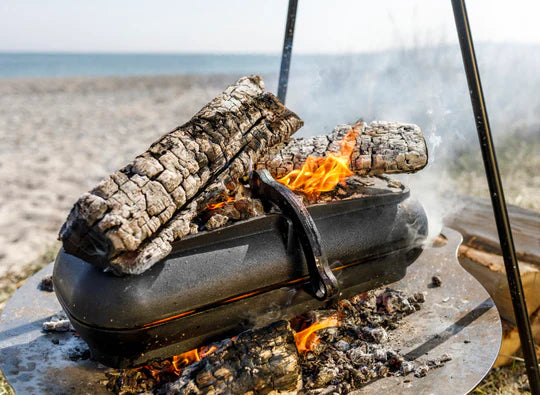 The cast-iron Potato Cooker combines all the advantages of shape and material: The cast iron intensifies the flavour of the food, and the round design optimally supports heat distribution. This creates characteristic roasting flavours while cooking evenly and gently with all-round heat. The Potato Cooker made of cast iron is made for direct use in the fire, underneath and on top of the embers, but also for use on the grill or in the oven.