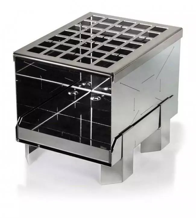 These four legs lift the Petromax Firebox fb1 and fb2 up by almost 4 cm. Thanks to the distance between the Firebox and the ground, the air supply is optimized and the ground remains undamaged. The legs made of stainless steel are as easy to transport as the Firebox itself, since they can easily be packed inside the packed Firebox.