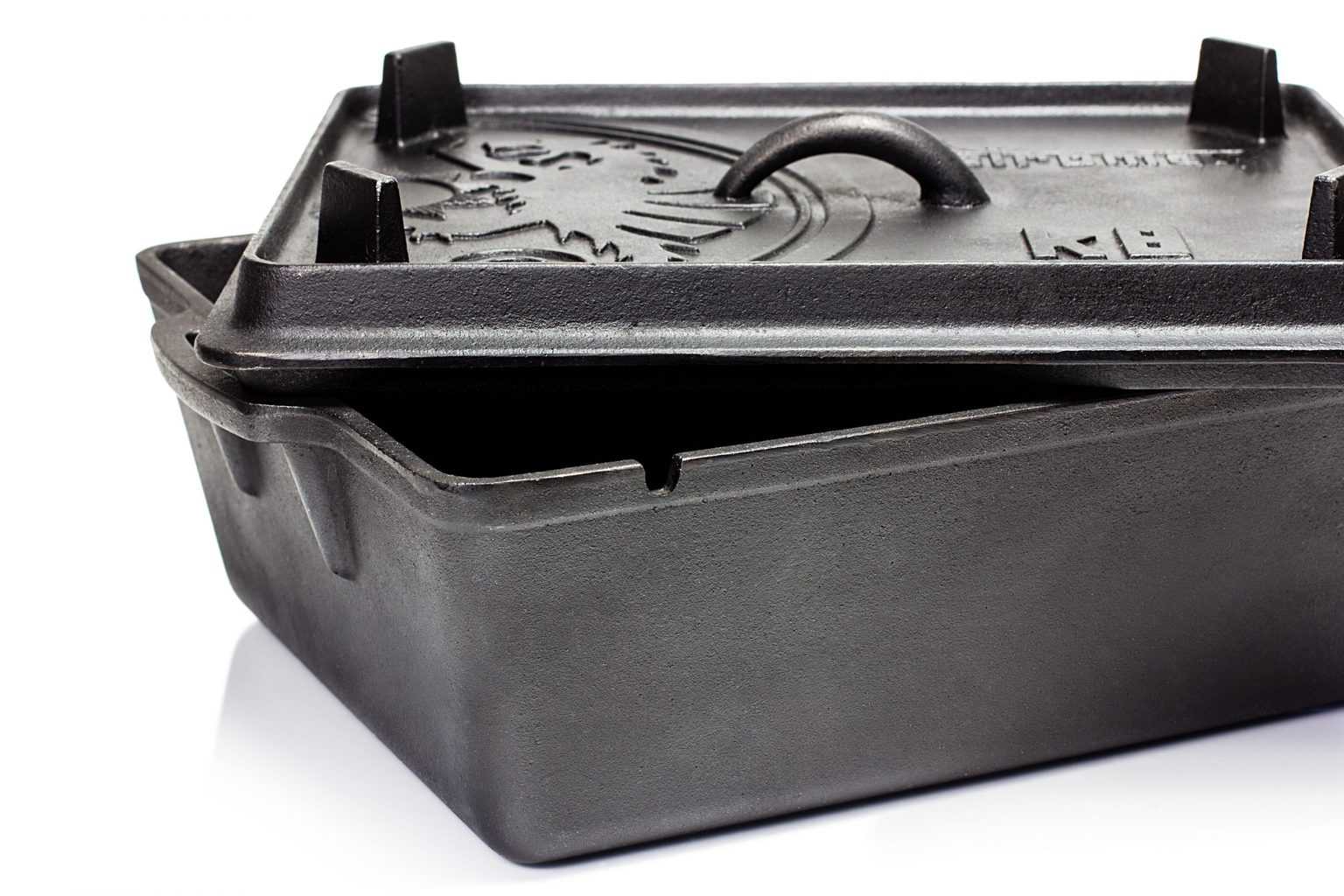 The Petromax Loaf Pan is perfectly suited for bread, cakes, casseroles and much more. For cooking outdoors, the lid of the cast-iron mould can be stocked with embers or briquettes, thus creating an outstanding all-round warmth, just as with a Dutch Oven. Moreover, the lid with feet and ridges makes upturned an ideal outdoor steak and grill pan. In the oven, the cast-iron loaf pan can be used as a roaster or for delicious desserts.