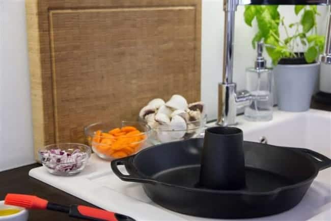 A chicken, a quail or a small duck will be prepared quite easily with the Poultry Roaster cf30. Placed on the cast-iron roaster, the poultry will be evenly juicily cooked thanks to optimal heat distribution. While the meat is sizzling in the oven or on the grill, surplus fat and meat juices will flow into the drip pan. The poultry will thus gain a delicious and crusty skin outside and thanks to the hole filled with spices, herbs and stock also the right flavour inside. The valuable properties of the material, as well as the pre-seasoned surface (seasoned finish) together with the natural non-stick effect, round off the easy use of the cast-iron roaster.Data