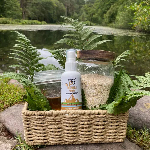 The Pits and Bits Detangle Spray. Get enriched, conditioned hair in no time. Quick drying formula infused with delicious Oatmilk & Honey fragrance. Just spray in and brush out. Suitable for dry or wet hair. This little bottle is the perfect no more knots remover. An ideal prep for painless and easy detangling and healthier-looking hair.
