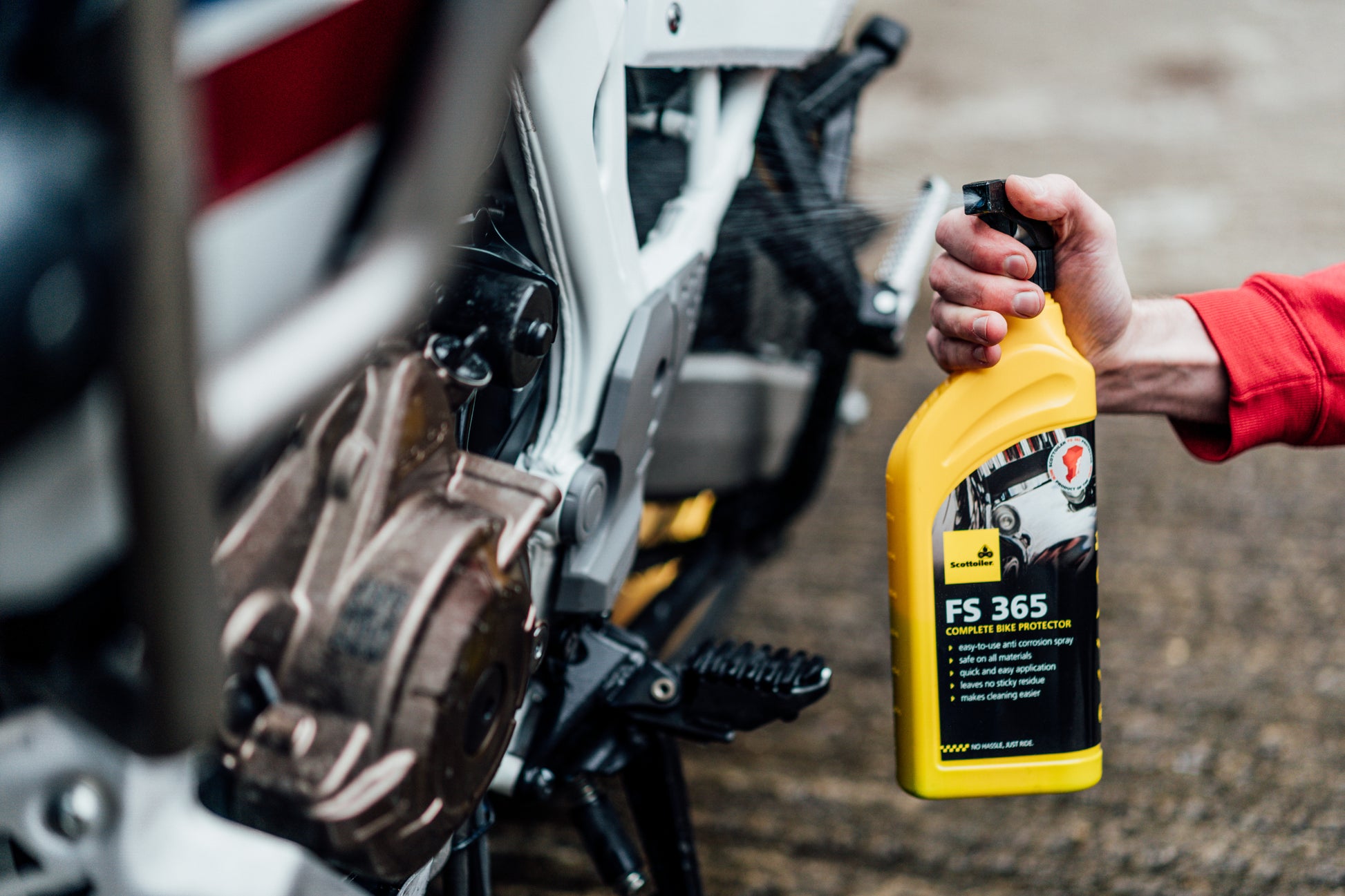 Scottoiler FS 365 Complete Bike Protector is a water-based formula that neutralises salt to prevent rust and corrosion