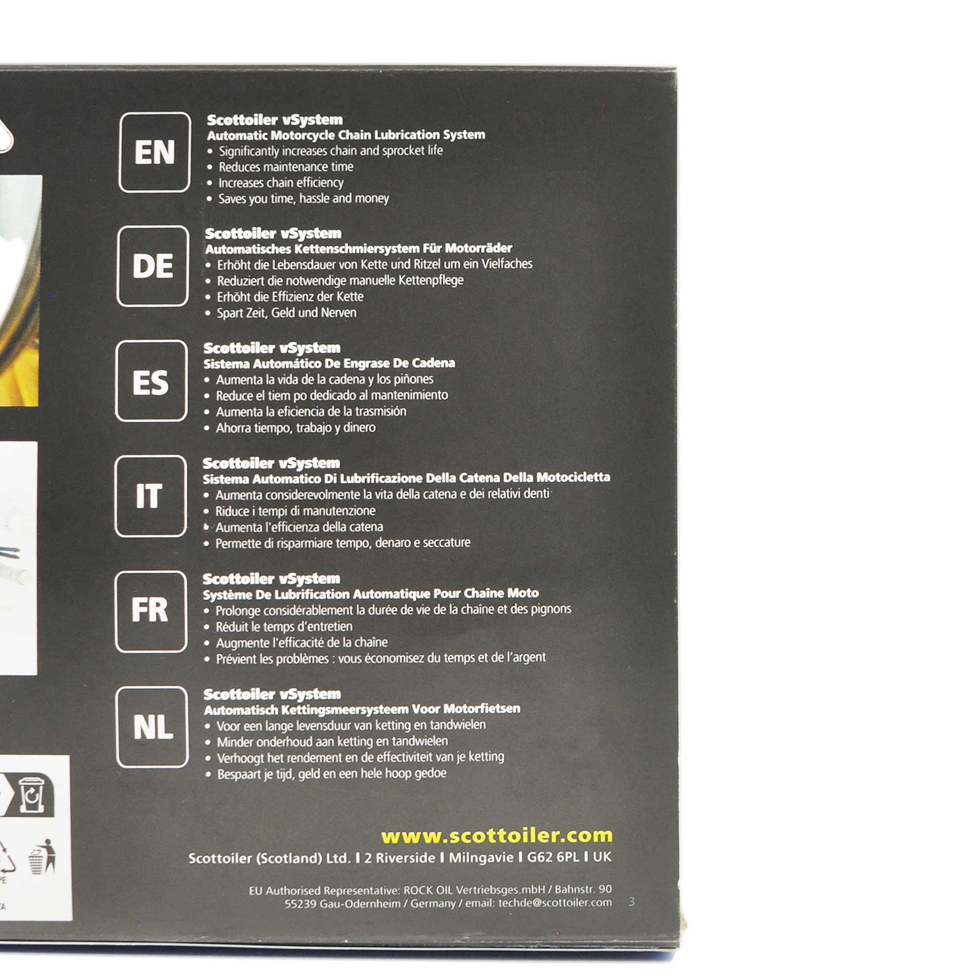 Scottoiler The micro vSystem automatic motorcycle chain oiler is a compact version of the original Scottoiler.