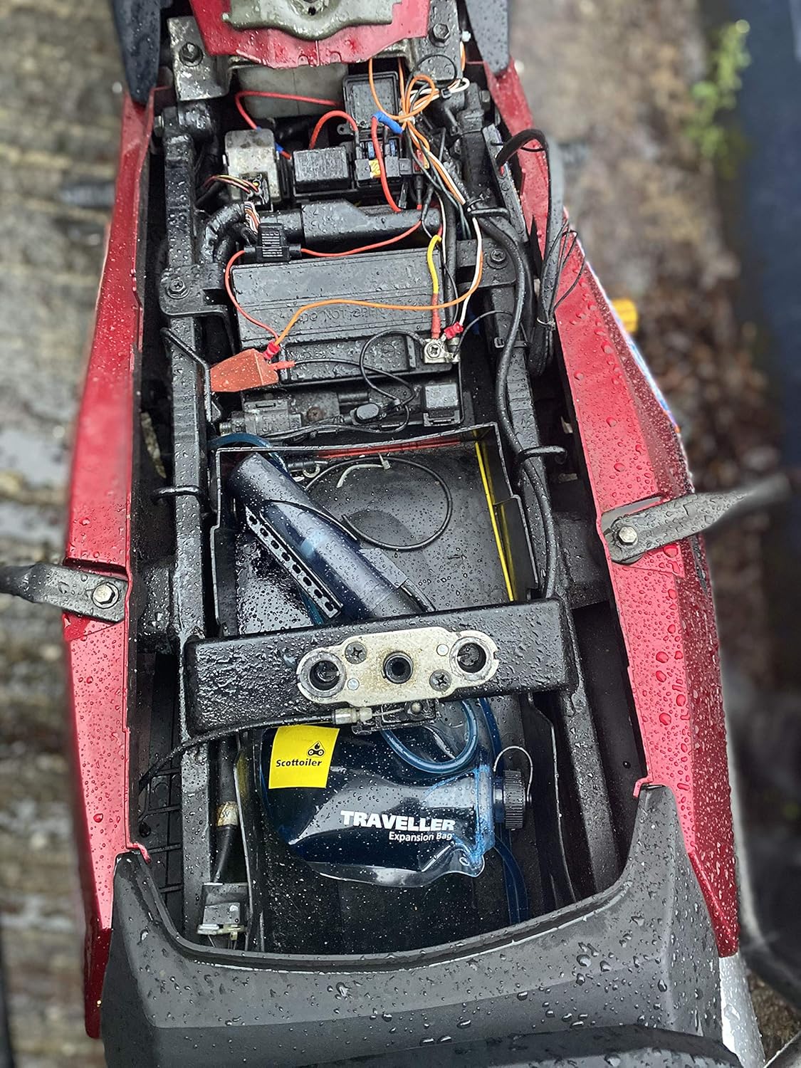 The Traveller Expansion Bag is the ultimate chain oiler reservoir range extender increasing the range of your chain oiler by 2,500 miles (4,000km). Perfect for long-distance rides it is designed to increase the oil capacity of your Scottoiler system for fewer refills and maximum convenience. The collapsible and flexible easy-to-mount reservoir seamlessly integrates with all Scottoiler chain oiler systems, connecting via a secure twist-lock connector. Included in the kit are adaptors for both the xSystem and the vSystem/eSystem, ensuring universal compatibility. ✔ Expand your chain oiler’s capacity ✔ Flexible, compact design ✔ Quick & secure installation Whether you're a commuter looking to extend the time between Scottoil refills or a touring rider needing extra mileage, the Traveller Expansion Bag keeps your chain lubricated for longer, so you can focus on the ride. |