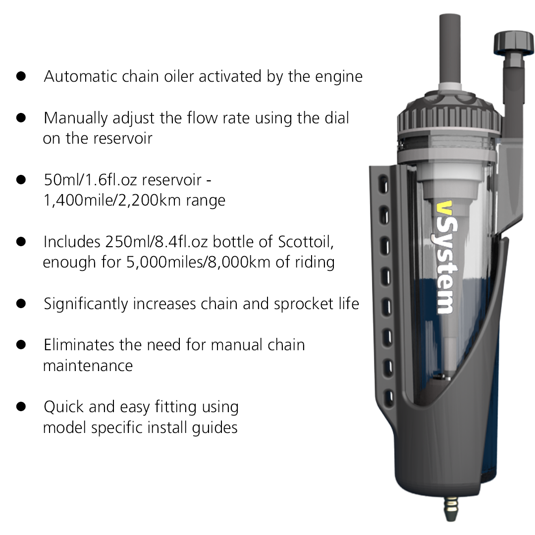 Scottoiler The vSystem automatic motorcycle chain oiler is the original Scottoiler.