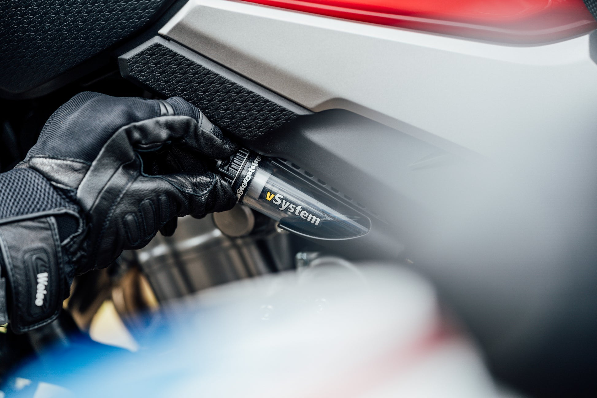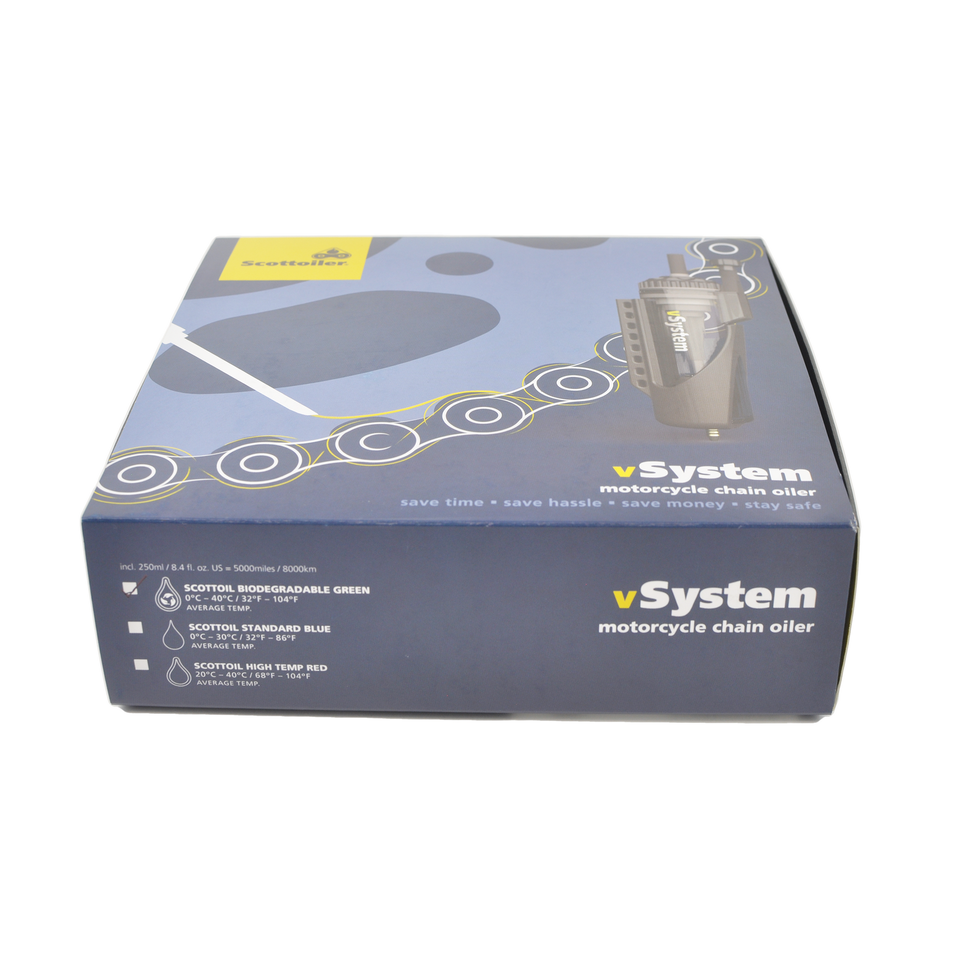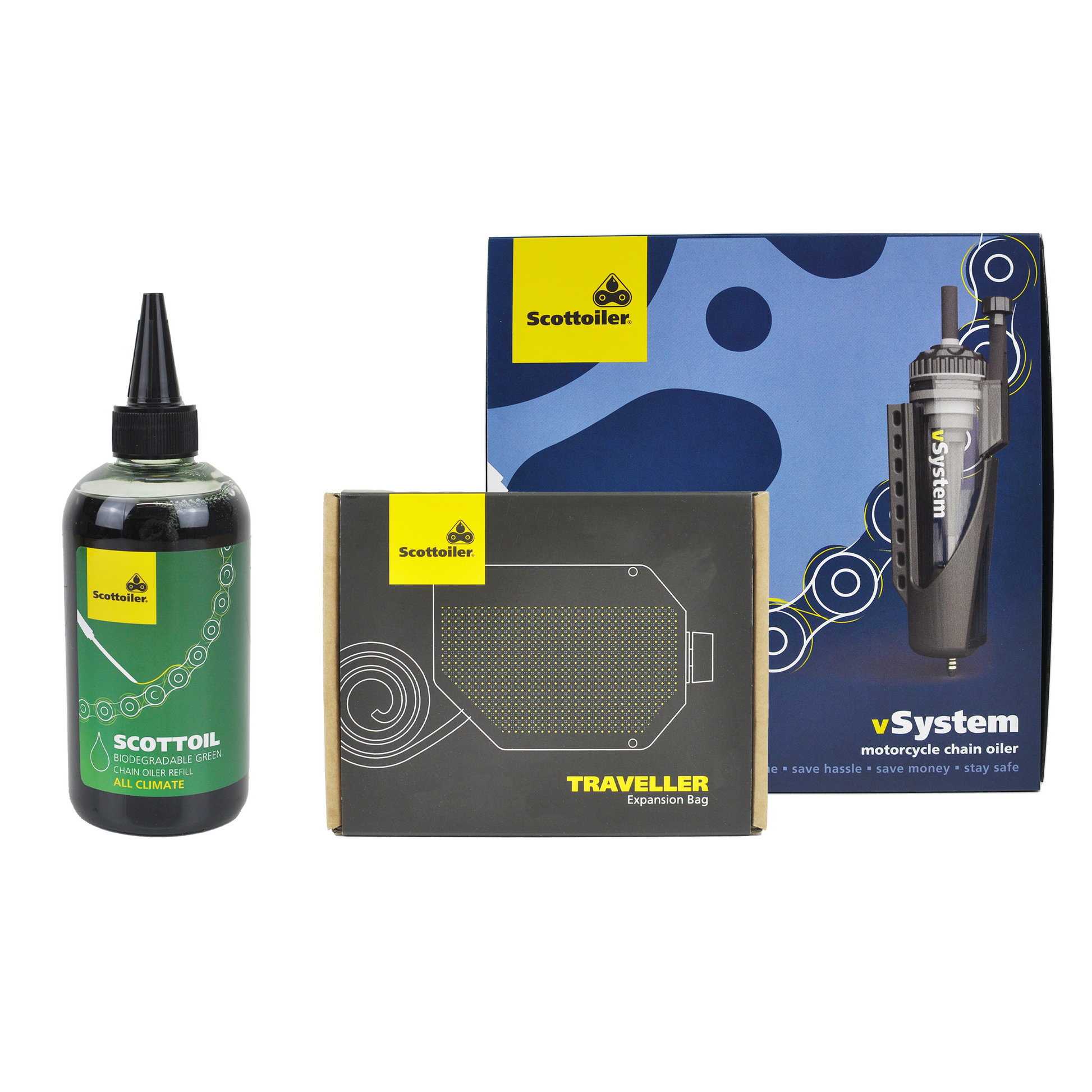 The vSystem automatic motorcycle chain oiler is the original Scottoiler. It uses a vacuum-operated mechanical valve that is easy to install and built on 40 years of trusted reliability & performance. Designed to keep your motorcycle chain lubricated and protected as you ride, installing the vSystem eliminates the hassle of manual lubrication and ensures a consistent flow of Scottoil lubrication for a cleaner, longer-lasting chain. This easy-to-install mechanical system extends chain life by up to 7 times, reducing wear and saving you on expensive repairs. The vSystem uses a gravity feed powered by the engine vacuum to deliver oil directly to your chain, ensuring optimal lubrication and only operating when the engine is on. Combined with our low-tack formula chain oil the vSystem reservoir can hold enough Scottoil to keep your chain clean and lubricated for around 1,400 miles (2,200km). This kit includes: ✔ Scottoiler vSystem reservoir & installation components ✔ 250ml/8.4 fl.oz. of Scottoil (with a choice between Standard Blue, High Temperature Red or All Climate Biodegradable Green) ✔ Scottoil Filling Spout for easy refilling ✔ Full instructions & 2 year warranty Want to know if you can install this on your bike? Visit the Scottoiler Knowledge Base for Model-specific Install Guides. The Scottoiler vSystem keeps your chain in peak condition, saving you time, money, and hassle! |