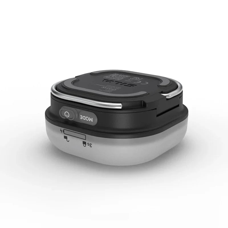 The Glow camping lantern offers 250 lumens light output with a frosted lampshade that creates a warm and bright 360° glow. It has two light modes—cool white and warm white—for different situations. The cool white light is an efficient work light when setting up camp, cooking, or organizing, while the warm white light creates a cosy campfire glow for relaxing, socialising, or reading. Both light modes feature four brightness levels, including a super low and battery-saving 5-lumen mode. Glow runs on both AAA batteries and the Silva Hybrid Battery.