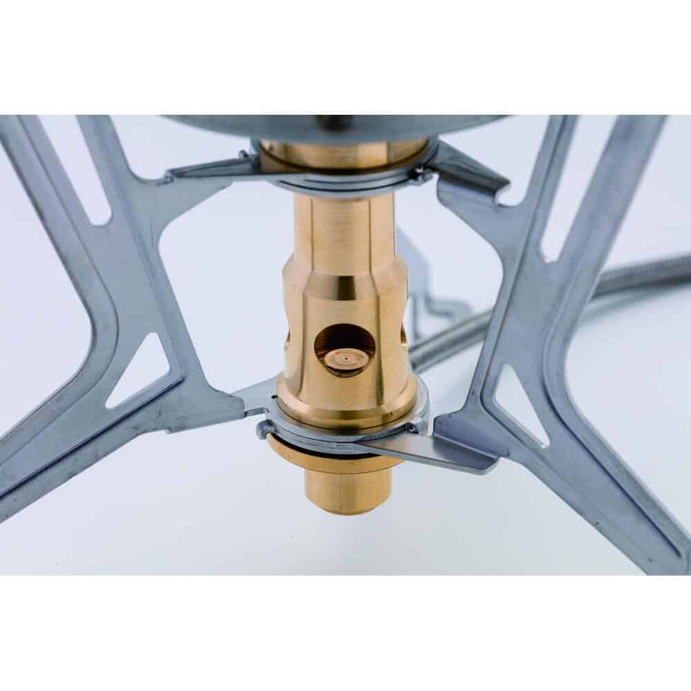 This is a detachable stove upgraded for mountain use. Featuring an improved burner head with a concave crater shape to provide excellent performance under windy conditions. The Burner head is uniquely designed to produce over 300 sub-flames. It burns quietly yet produces a strong flame even in windy conditions.