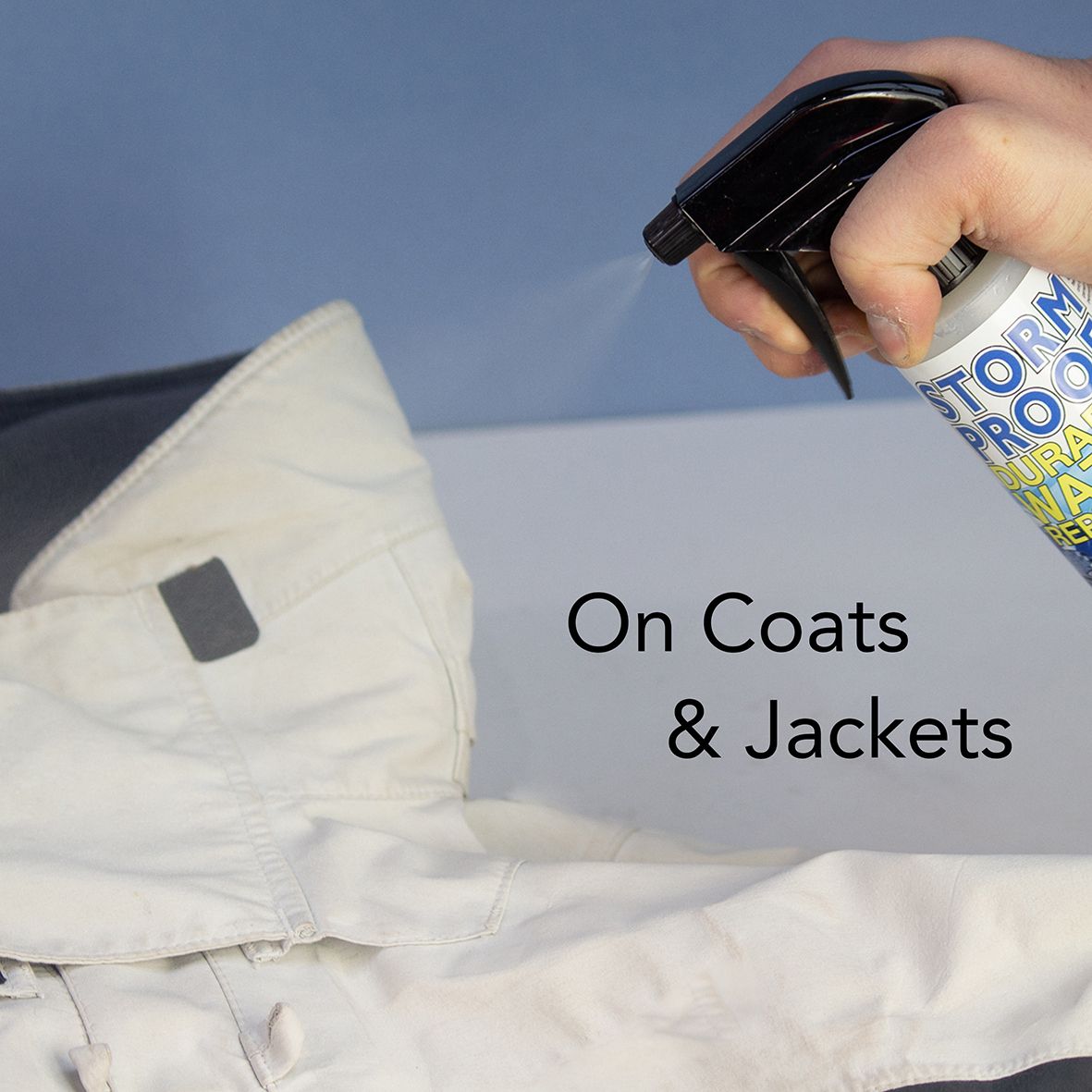 Stormsure's Stormproof is a spray-on durable water repellent that you should use on outdoor gear such as foul weather clothing, raincoats, woollen coats, hats, breathable jackets, fleeces, tweeds, synthetics, tents and footwear.