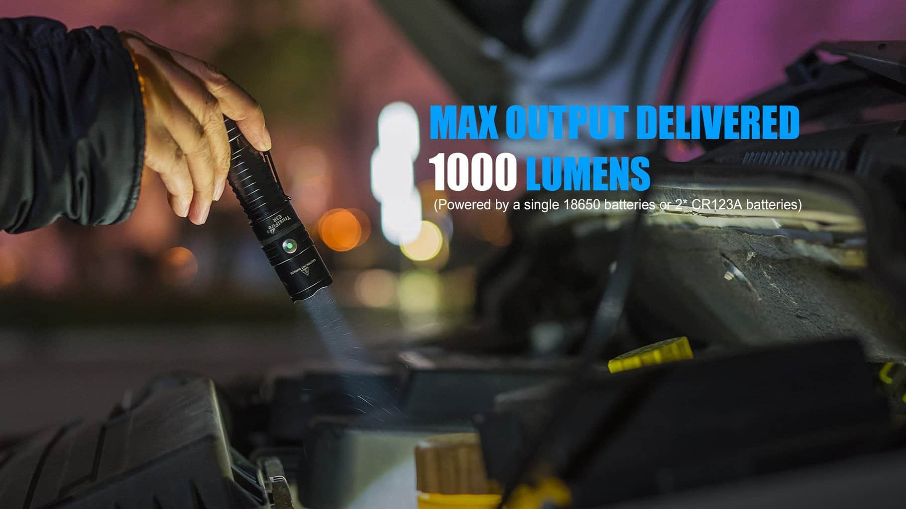 - Long Run Time: This light gives out 1000 lumens max for 105 minutes, max runtime 560 hours under 5 Lumens low mode,boasts a throw distance up to 175 meters with one 18650 battery (included). It delivers long life for every day use like dog walking on dark roads and trails.