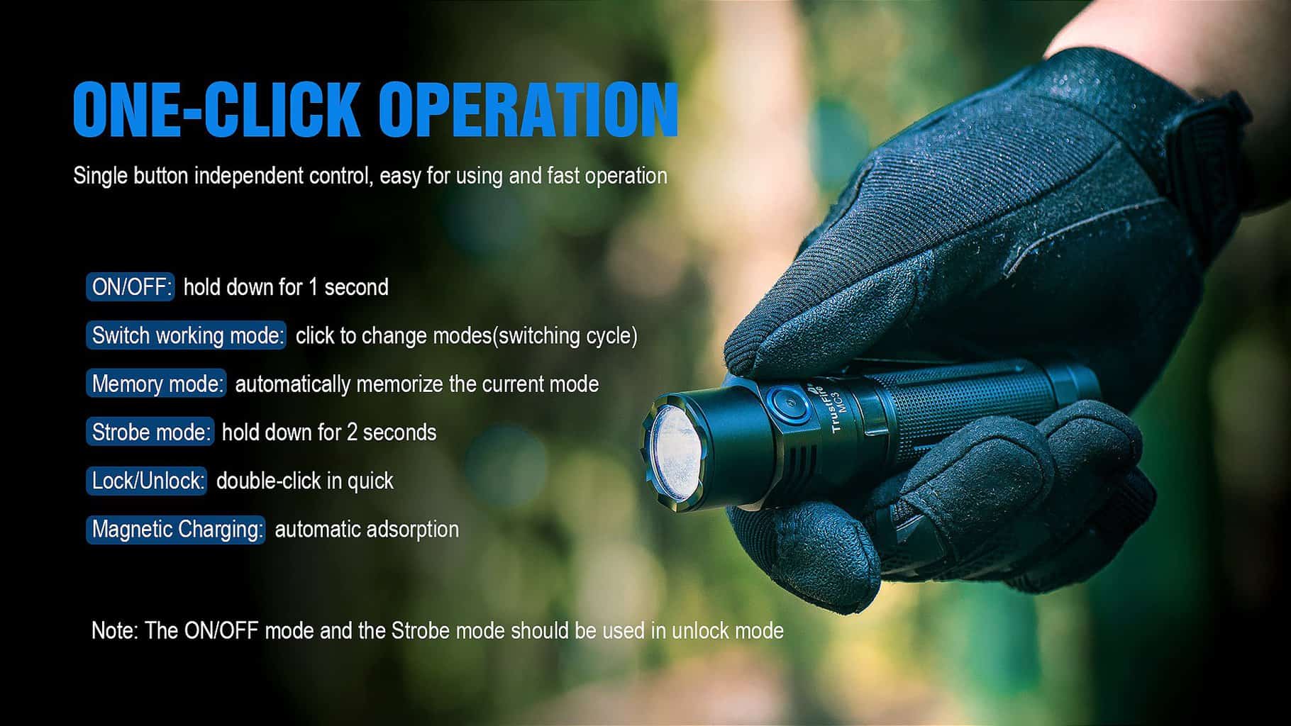 Trustfire MC3 is a magnetic charging tactical flashlight with high performance.